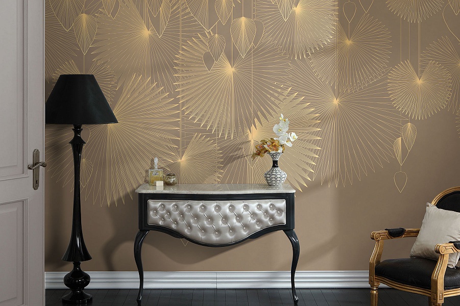 В этом дизайне линия передает игру света и тени - за счет переливов цвета создает иллюзию присутствия золота. За счет линии проявляется многослойный объем композиции.
