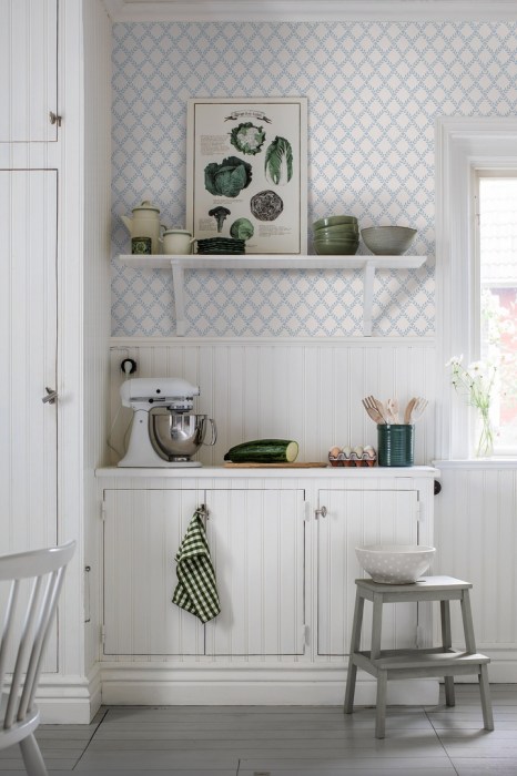 Простые и элегантные обои Trellis Leaves в винтажном стиле из коллекции FALSTERBO III от шведского произодителя обоев BORASTAPETER с их классическим узором привнесут в интерьер винтажную нотку.