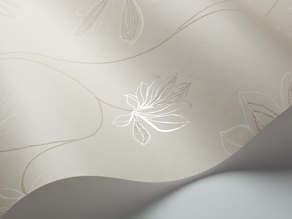 В этих обоях присутствует контраст. Нарисованные вручную цветы с извивающимися стеблями имеют графический дизайн. И даже не смотря на то, что серия Espri — это повествование о взаимодействии искусства и природы, цветы будто бы были погружены в медную краску, что позволяет нам также уловить некоторые оттенки прочности и механики.