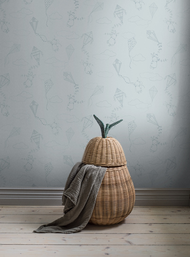 Очаровательные обои Up & Away в коллекции шведских обоев BORASTAPETER, выполненные в контрастных оттенках голубого и синего, созданы совместно с модным шведским брендом Newbie.