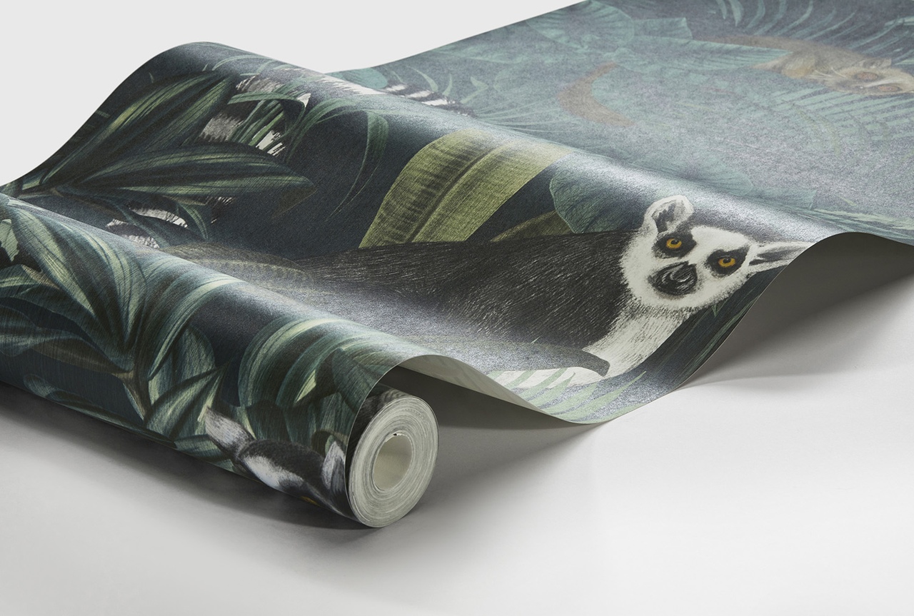 Их рисунок вдохновлен богатой африканской природой: среди пышной зелени джунглей цветут мадагаскарские «звездные» орхидеи-ангрекумы и прогуливаются лемуры, придающие этим обоям нотку радостной беззаботности. «Плетеная» текстура обоев смотрится очень элегантно.