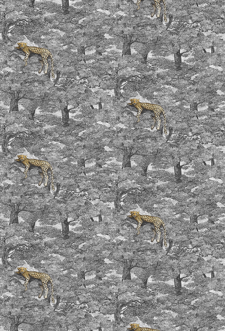 Меж зеленых деревьев кенийского национального заповедника «Самбуру» лениво разлеглись леопарды, чей роскошный окрас красиво контрастирует с лесом, изображенным в стиле графики.