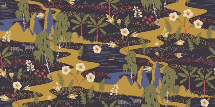 Этот дизайн в коллекции WONDERLAND представлен в двух совершенно разных цветовых мотивах: ночном и дневном, в коллекции также присутствует этот рисунок в виде фотопанно.