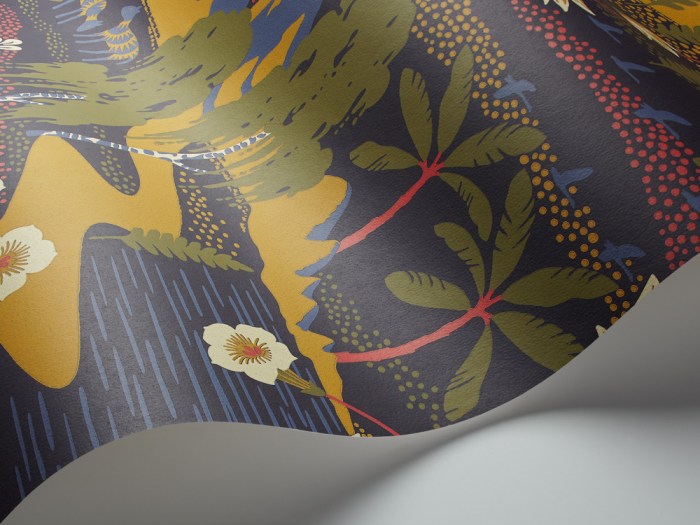 Яркие, сочные и необычные обои для холла «Flyttfro» из шведских обоев BORASTAPETER являются одними из самых красочных представителей обойной коллекции «Wonderland». На благородном темном фоне покрытий прорисована настоящая картина: тихая река, пересекающая всю площадь полотна, на ее берегах ассиметрично расположены пальмы, березы, если, красивые белые и красные цветы, и характерные для этой обойной коллекции животные в интересном одеянии. Настенные покрытия представлены двух видов: на светлом и темном фоне. Первые лучше применять для акцентирования маленьких и плохо освещенных комнат, темные же, будут уместны в комнатах больших размеров.