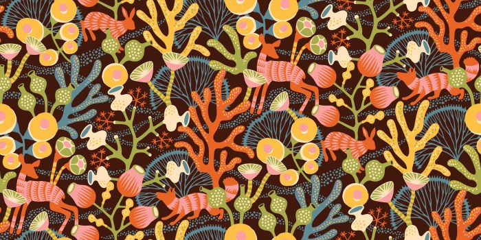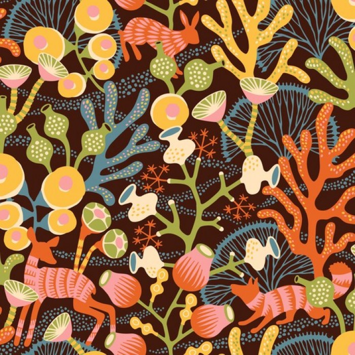 Такой мир существует, если просто на минуту закрыть глаза. Представьте, что вы оказались в загадочном месте, где морские кораллы растут на летней полянке, а кролики, вдохнув поглубже, ныряют в свои норки. Эти игривые обои присутствуют в коллекции в 4 цветовых различных цветовых гаммах: нежное сочетание пастельных голубых, бежевого и белого цветов на фоне цвета утиного яйца, сочетание зеленого хаки и цвета синих водорослей на темно-сером фоне, игра дынно-желтого, кораллово-красного и синего с зеленым на черном фоне а также яркая композиция красного, синего, зеленого и желтого на белом фоне. Также этот рисунок представлен в виде прекрасного фотопанно.