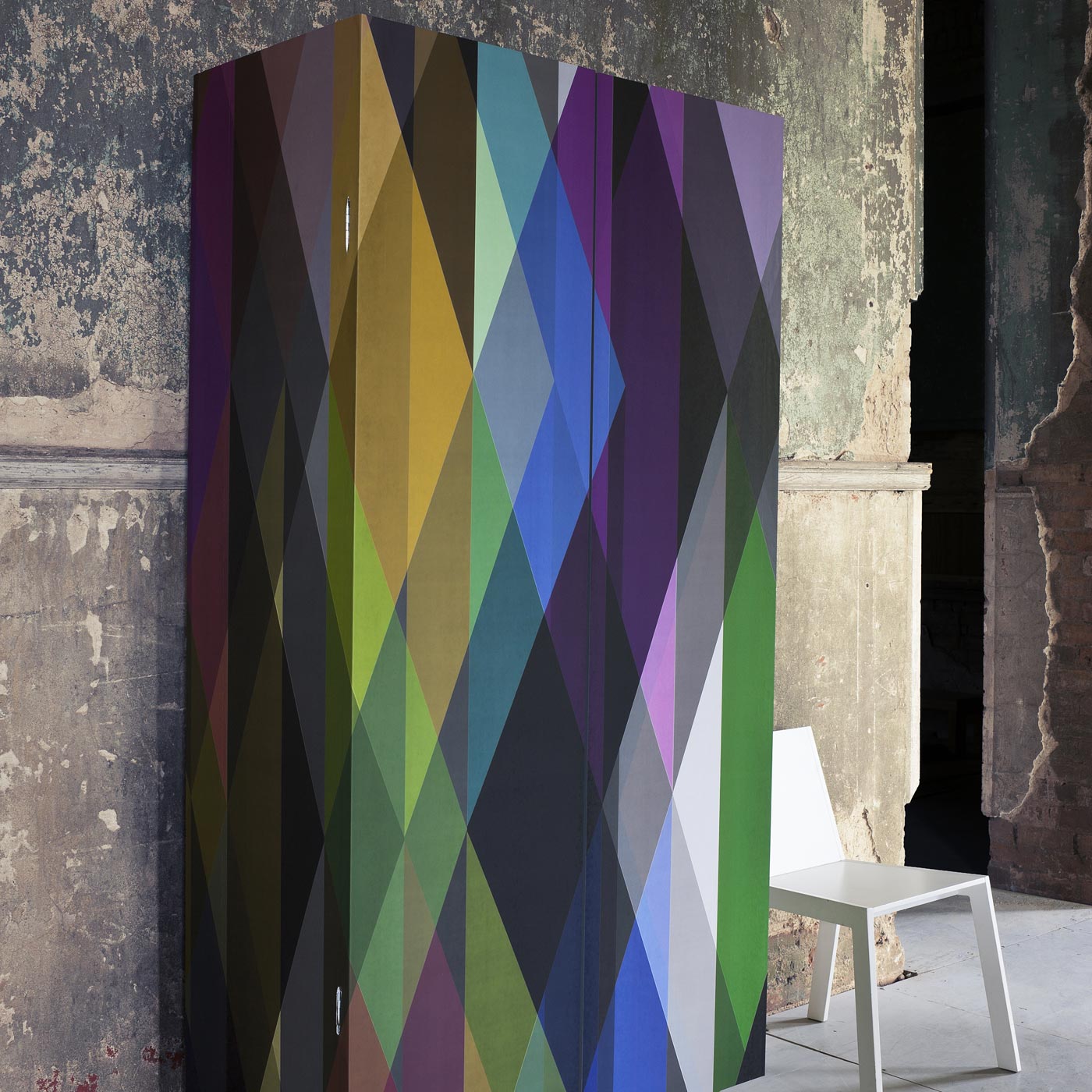 На этом панно фигуры разного размера и цвета словно наслаиваются друг на друга, создавая в местах соприкосновения новые изумительные оттенки. Эти разноцветные фигуры кажутся почти прозрачными, и они чудесным образом складываются в волшебный орнамент, который напоминает огромный витраж на стене. Cole & Son предлагает два варианта этих обоев: разноцветный; и монохромный черно-белый, с разными оттенками серого.