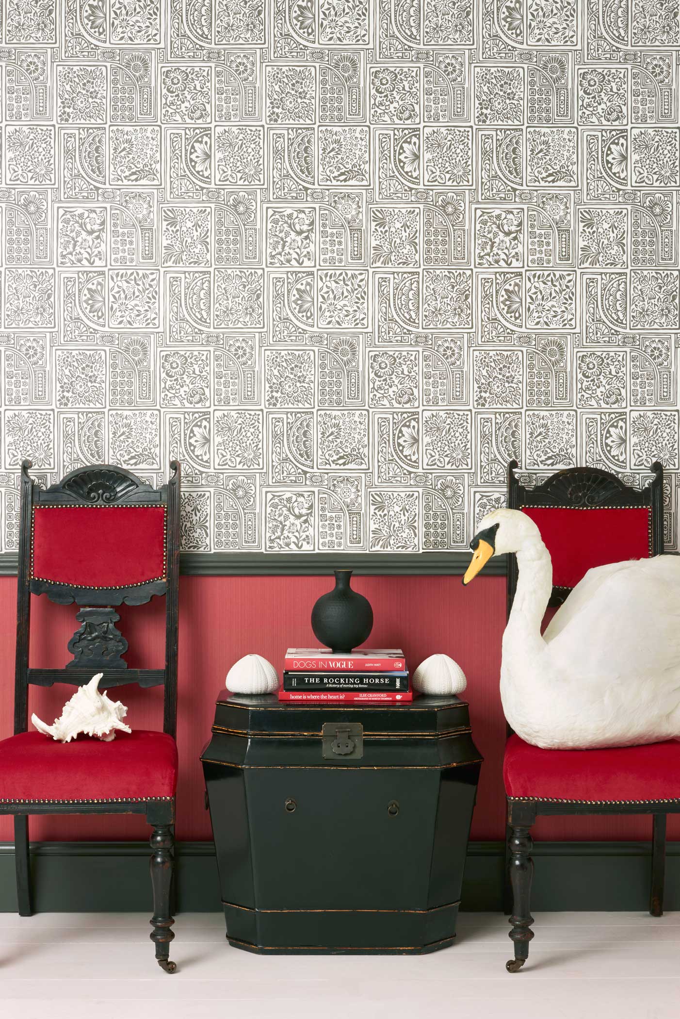 Узор на обоях – это удивительное сочетание нежных цветочных мотивов и строгих геометрических линий, которые прекрасно уживаются вместе, выгодно оттеняя достоинства друг друга и создавая иллюзию мастерски уложенной плитки.