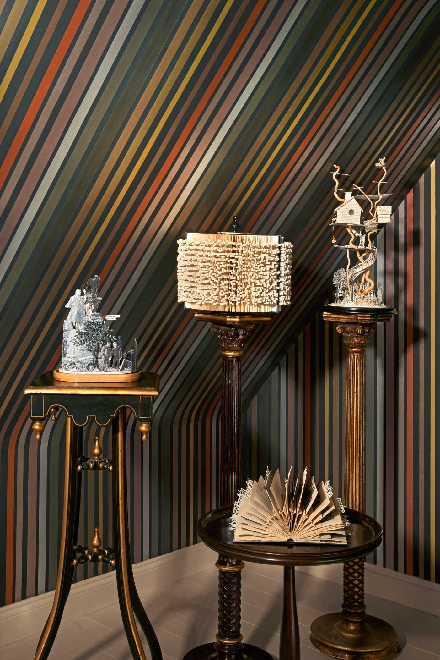 До их появления процесс изготовления обоев Carousel Stripe был невероятно сложным и трудоемким. Для того, чтобы получить красивые продольные полосы разных оттенков, требовался специальный многосекционный резервуар, каждое отделение которого вручную наполнялось краской нужного цвета.