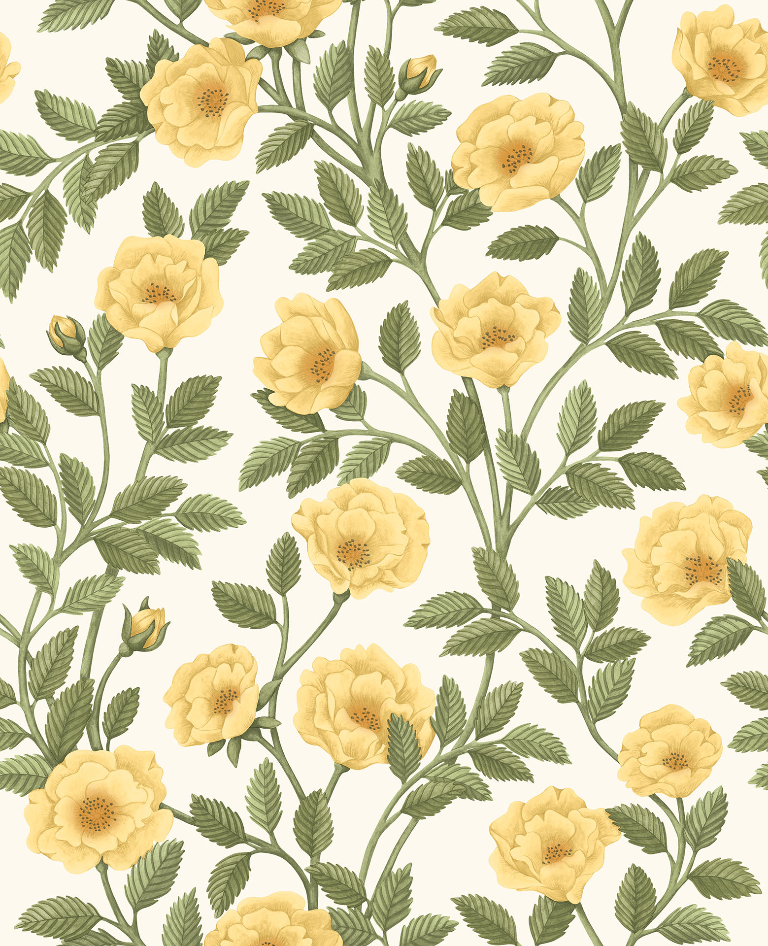 Триумф розы ассоциируется с дворцово-парковым ансамблем Хэмптон-Корт и его тюдоровскими истоками, поскольку во времена правления Тюдоров этот цветок обрёл особое значение. Традиция культивирования роз в Хэмптон-Корте насчитывает уже 500 лет, и сегодня в великолепном розарии дворца растёт множество сортов высокочтимой “королевы цветов”, включая английские, чайные и вьющиеся розы, а также различные виды шиповника, яркая красота которых легла в основу этого потрясающего узора. Помимо сочетания красной помады и весенне-зеленого на пергаментном фоне в коллекции есть еще три восхитительные расцветки.