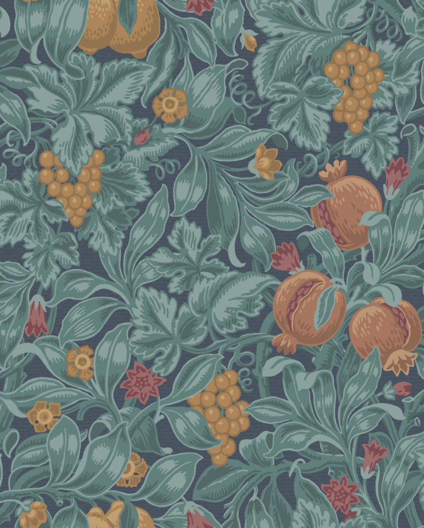 На рисунке обоев серии VINES OF POMONA в коллекции THE PEARWOOD COLLECTION от английского производителя обоев Cole&Son изображено множество фруктовых даров и садовых лоз из щедрого рога изобилия.