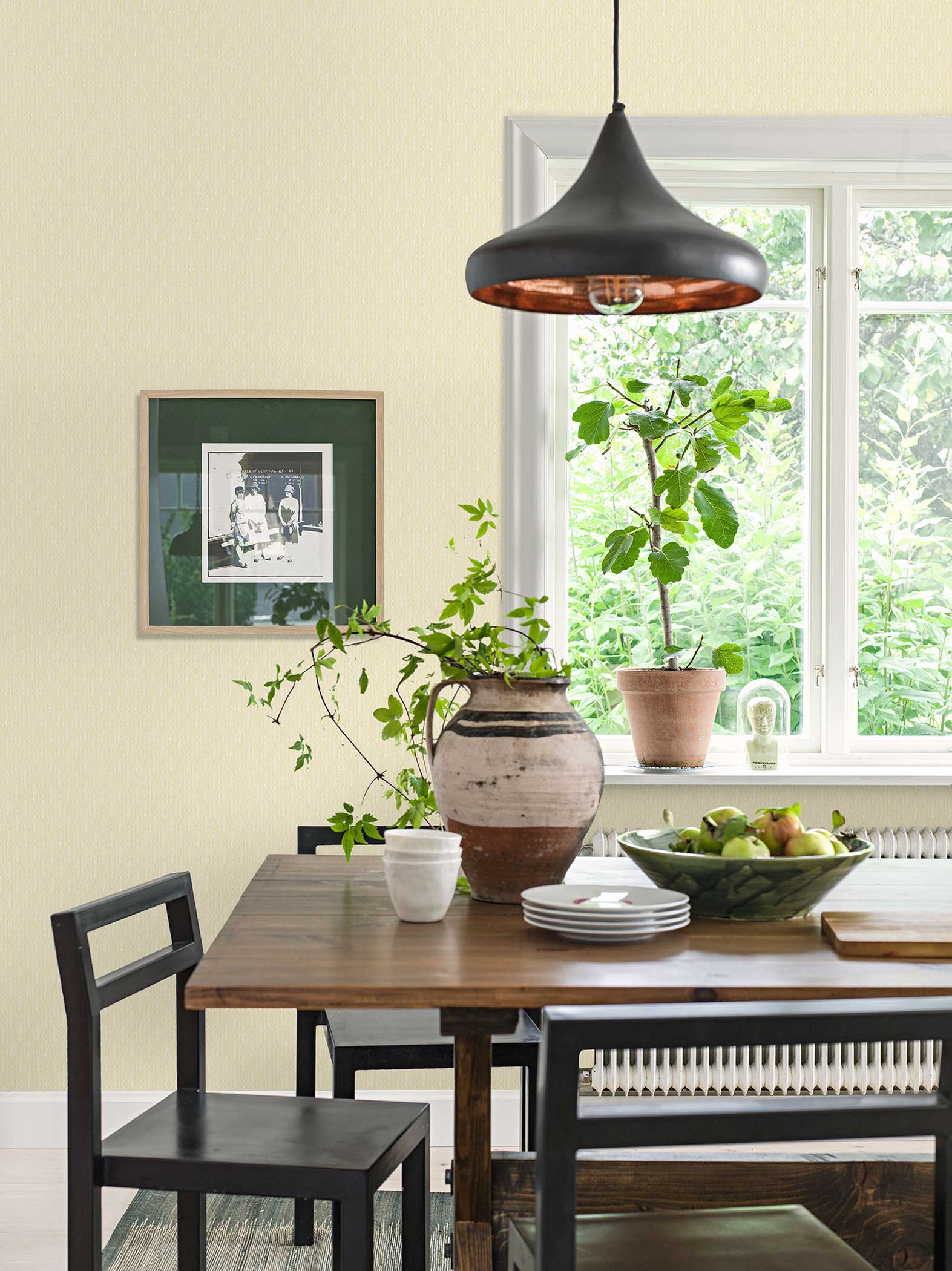 Прочные, практичные обои Lotura в коллекции ARKIV ENGBLAD с их простым рисунком использовались во многих домах в самых разных помещениях.