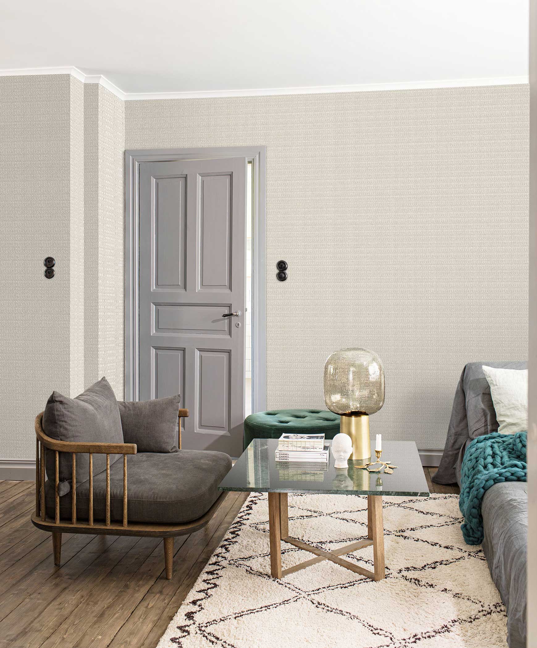 Обои Sigill в коллекции ARKIV ENGBLAD от ECO WALLPAPER поставляются в нескольких расцветках: глиняно-серый с голубым, бежевый с розовым, желто-зеленый, серый и классический бело-бежевый.
